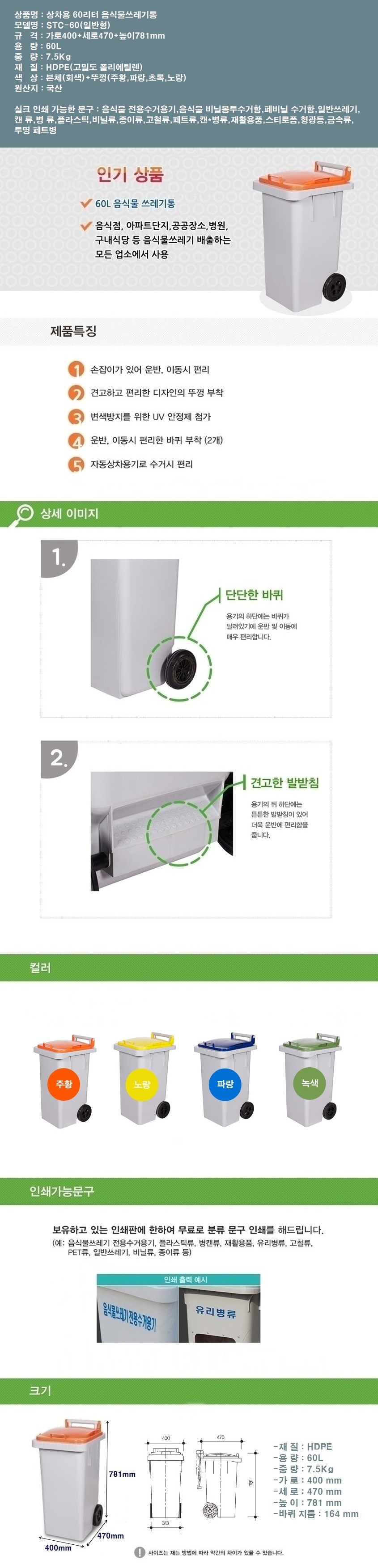 | 품명 | 60리터 플라스틱 재활용 분리수거함 |